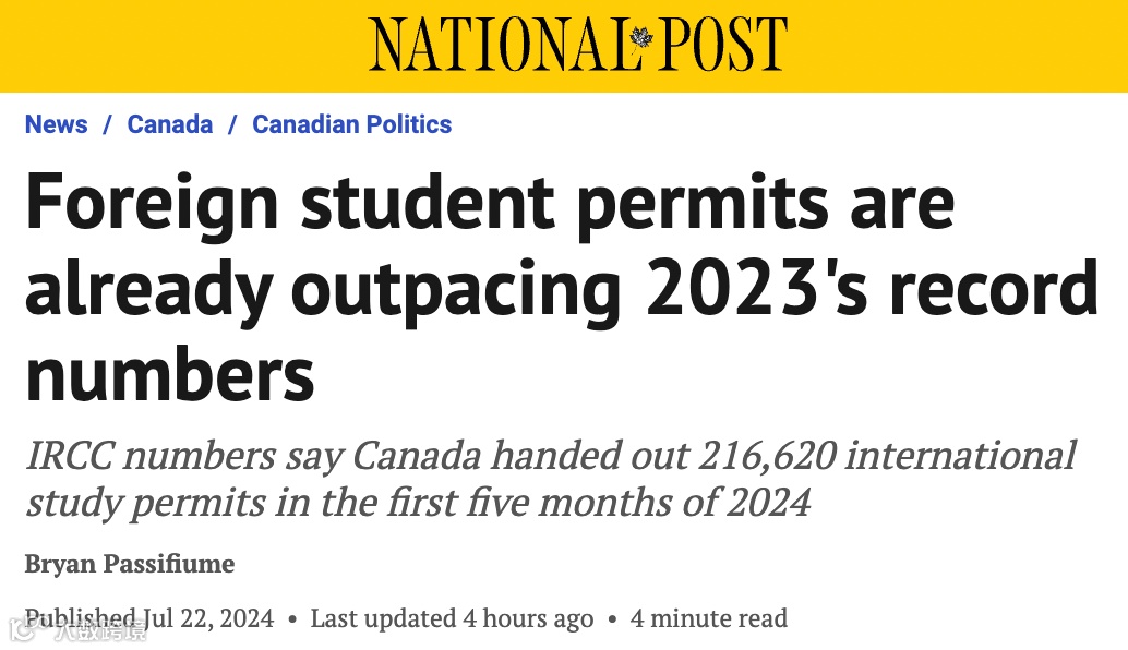 今年前五个月,加拿大移民、难民和公民事务部(IRCC)已经发放了216,620份国际学生签证,而2023年同期为200,205份。去年全年,加拿大共发放了682,420份留学签证。