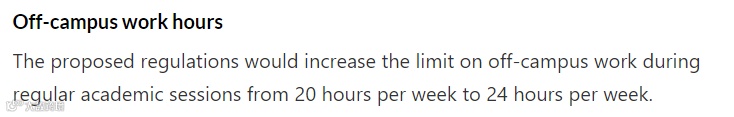 因此,拟议的新法将把学习期间可在校外工作的小时数限制从每周20小时提高至每周24小时。