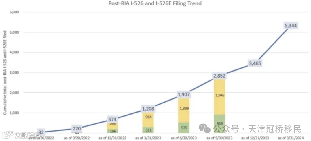 截至2024年三月底,总的新政I-526递件数量已经达到5344件。