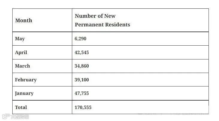 根据加拿大移民部发布的2024年1-5月的移民数据,2024年前5个月,加拿大总计引入新移民170555人。