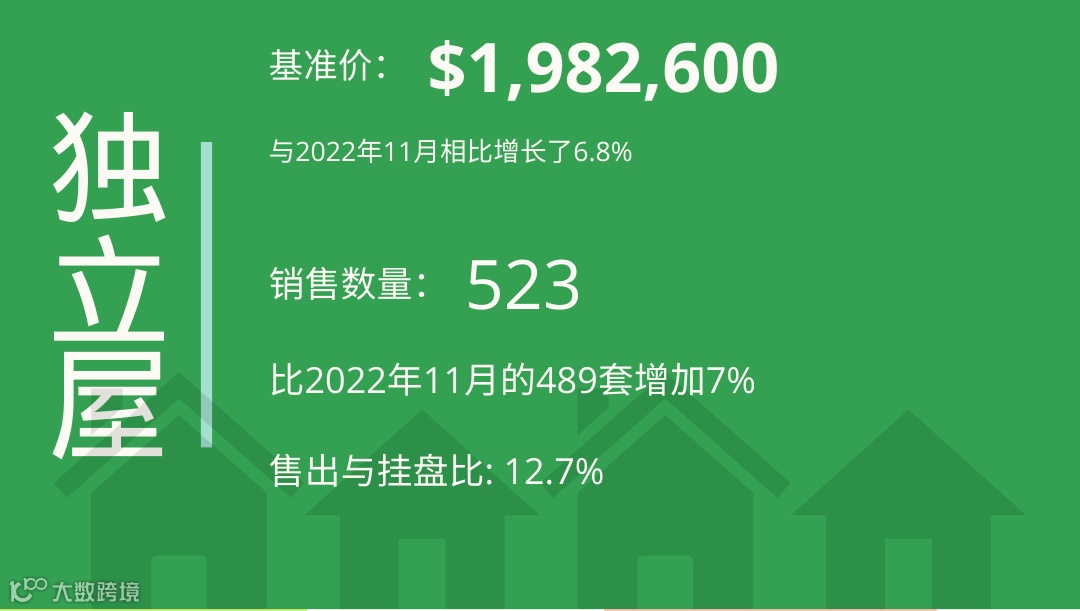 大温地区所有住宅物业的房屋价格指数综合基准价格目前为$1,185,100,与2022年11月相比增长了4.9%,与2023年10月相比下降了1%。