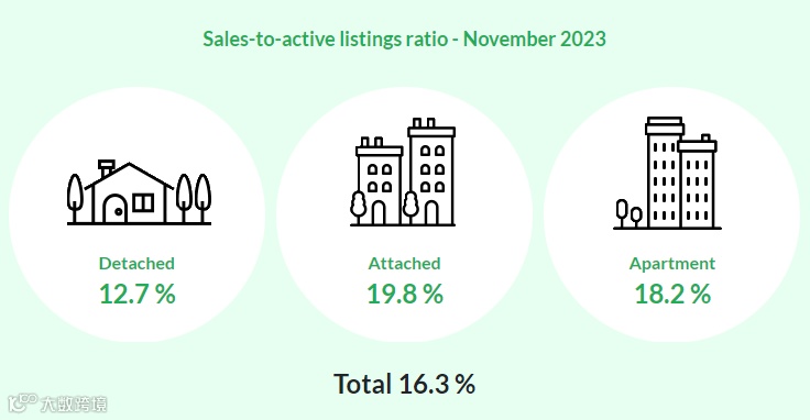 2023年11月销售活跃挂牌交易的比例为16.3%,其中: