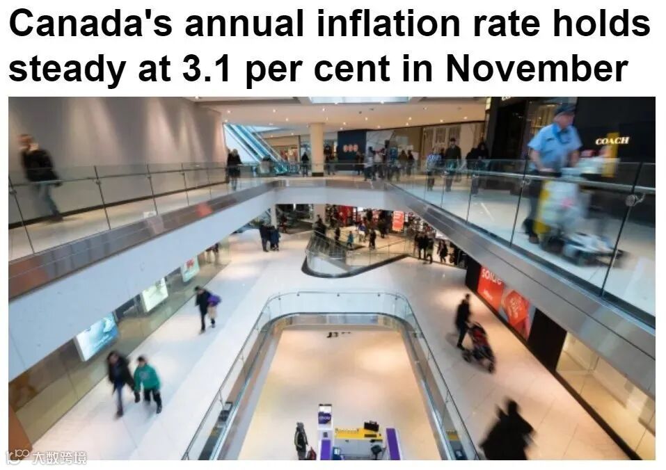 加拿大统计局发布11月份消费者价格指数报告,11月份加拿大年通胀率保持不变,稳定在3.1%。