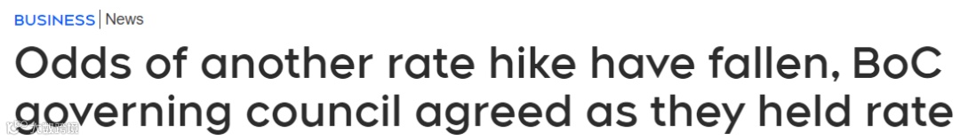 据CTV报道,加拿大央行管理委员会在最近一次利率决定之前的讨论中同意,再次加息的可能性已经降低。