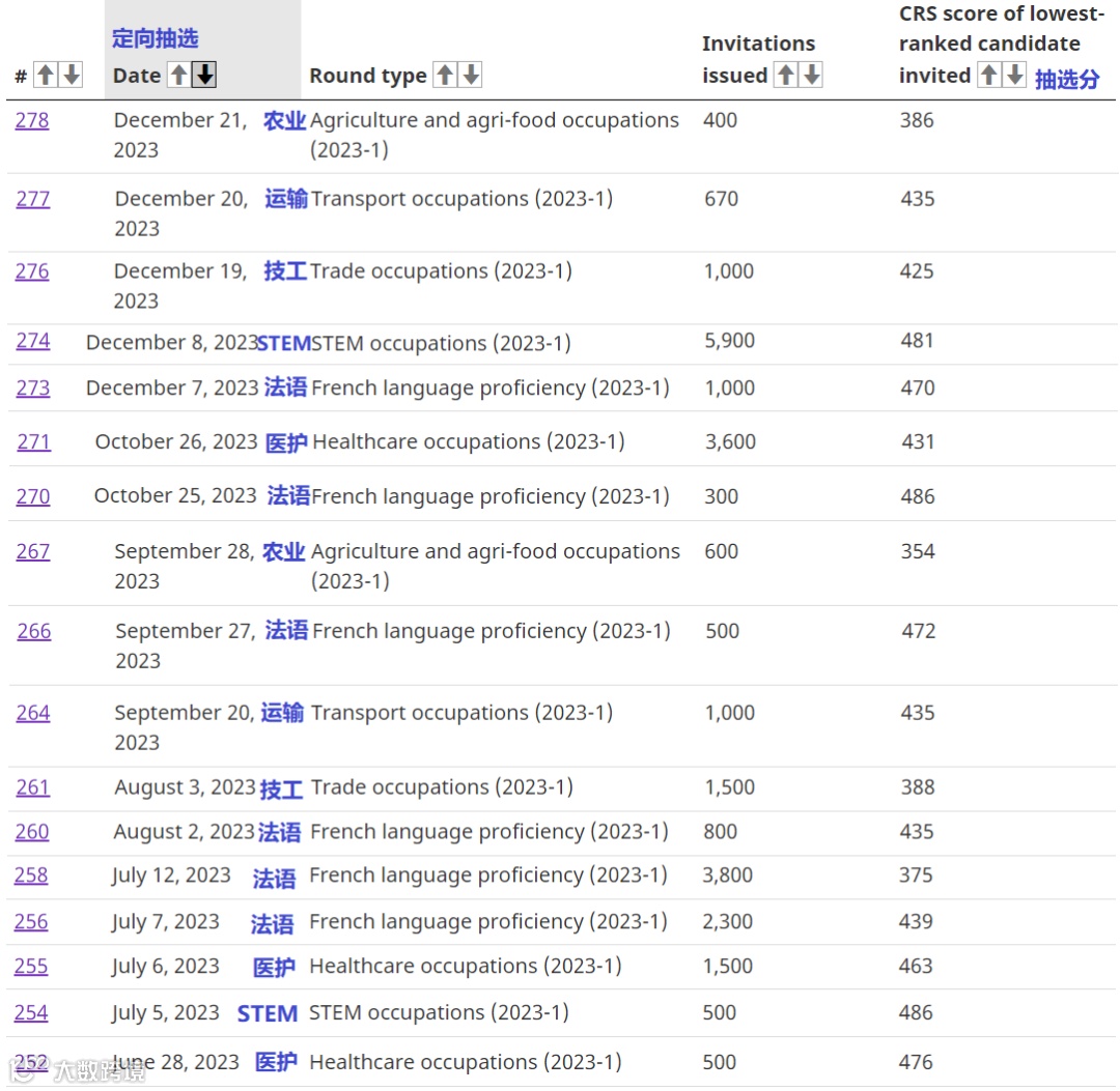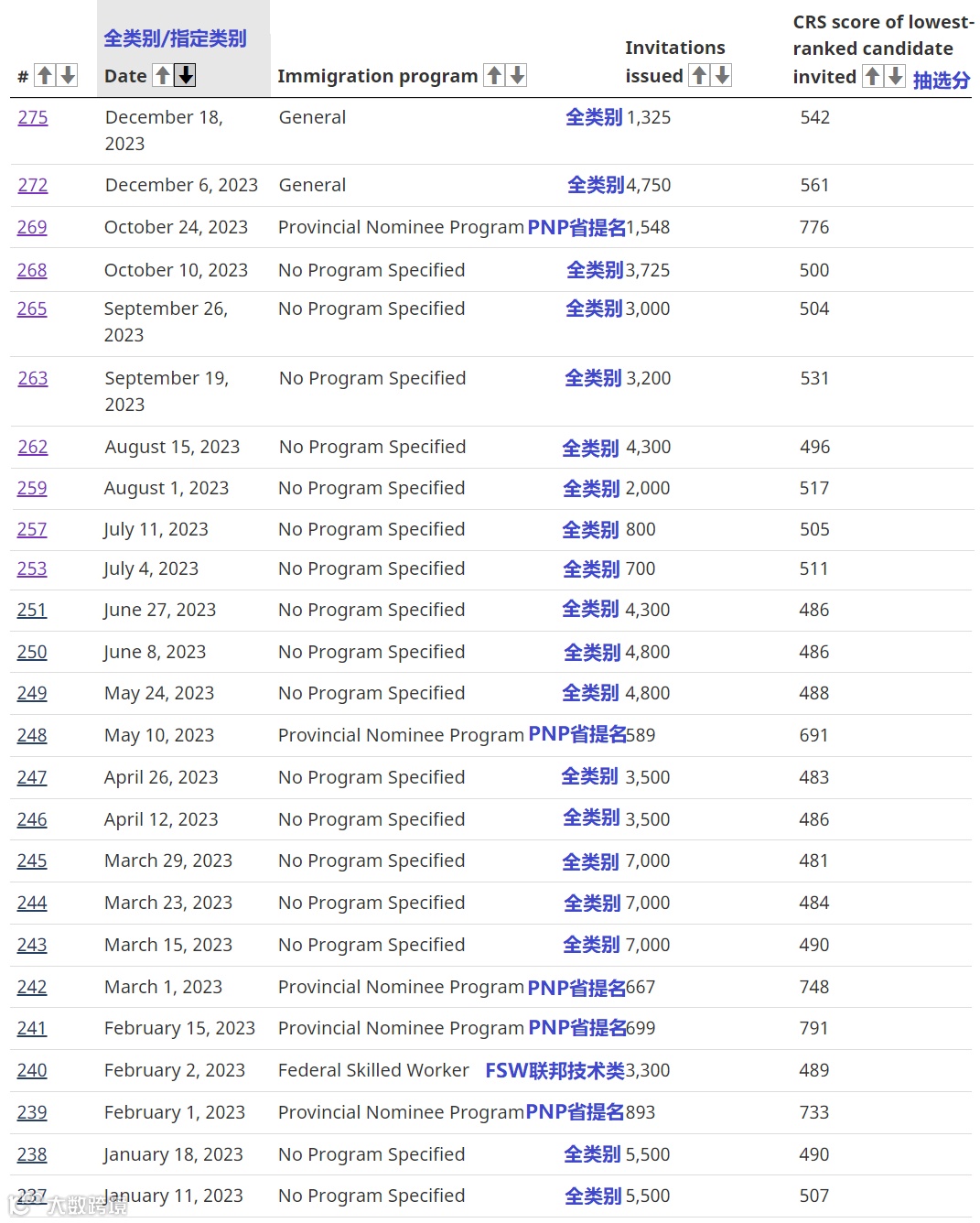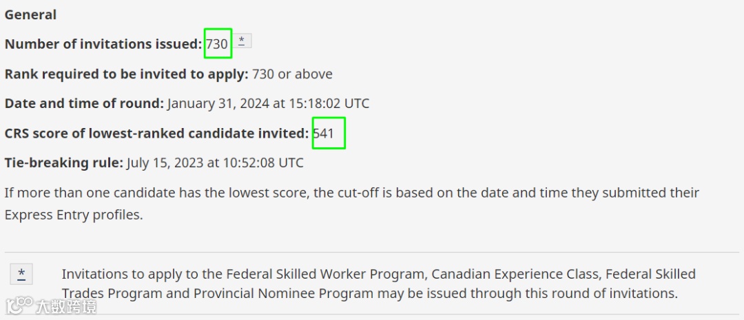 2024年1月31日,加拿大联邦EE快速通道不区分抽选的类别,向730位快速通道候选人发出了邀请!这次的抽选分数为541分。