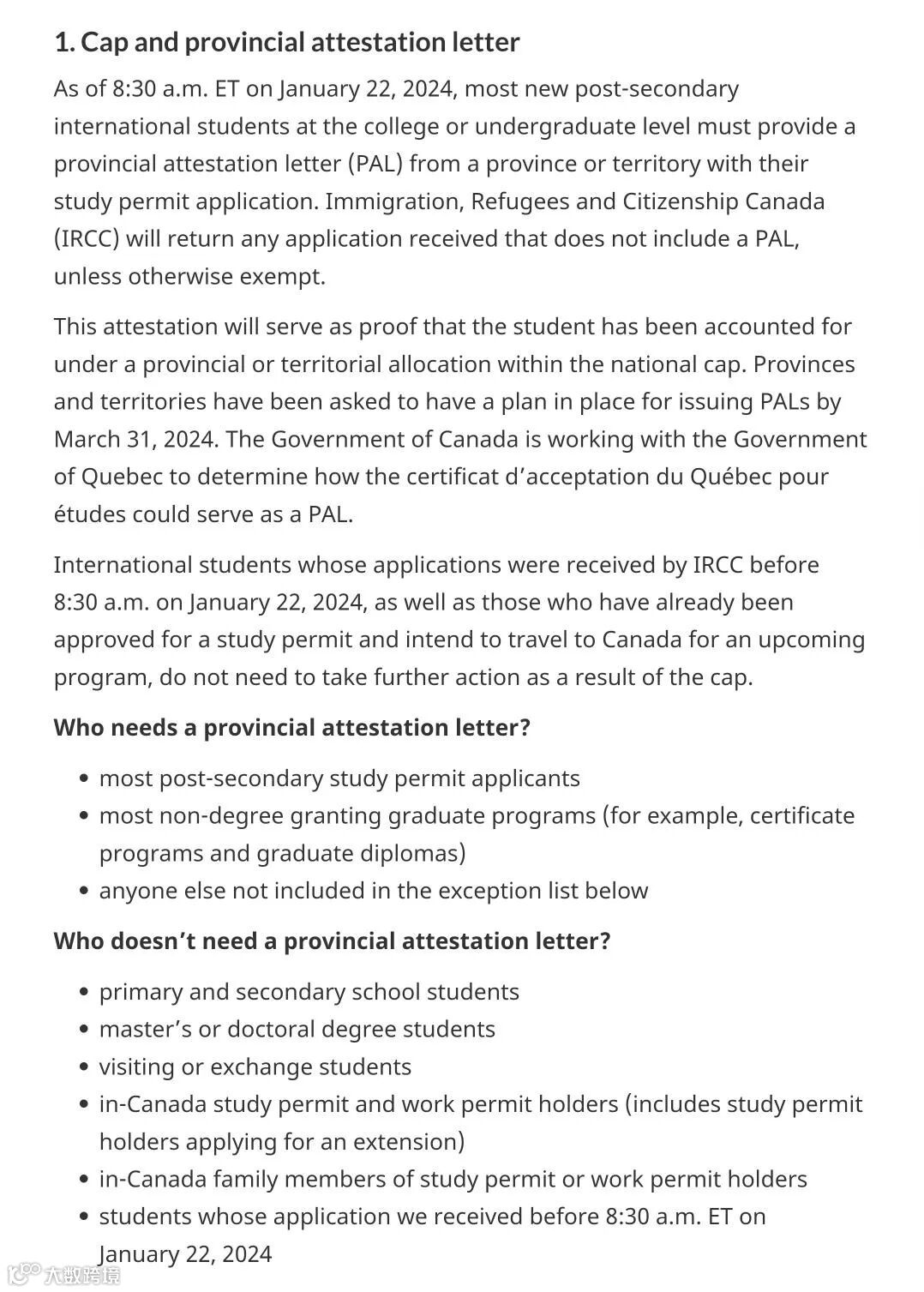2024年学签数量上限约为364000份,相比2023年批签数量下降35%,从1月22日上午8:30分开始,新申请Post-secondary(大专和本科)专业课的国际学生,在申请学签时,必须要提供省级证明信Provincial Attestation Letter(PAL)。上述时间点开始,没有提交PAL的学签申请将会被退回。