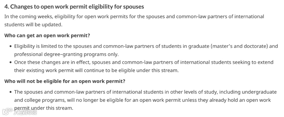 关于国际学生的配偶获得开放工签资格的更加详细的说明将在未来几周内更新。按照目前公布的内容来看