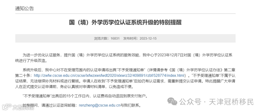 也就是说,自2024年起,随着教留服新增的“不予受理通知单”规定,留学生在完成学历认证后,可能会面临以下3种结果: