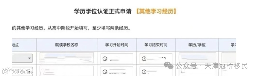 4、添加其他学习经历,信息需要与认证学历的时间是连续的。如:本科认证可以加高中经历,研究生认证可以加上本科经历。