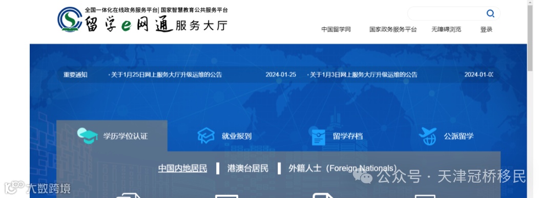 1、登陆教育部留学服务中心。(网址:http://zwfw.cscse.edu.cn)