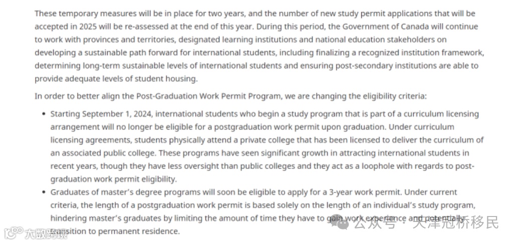 二、从2024年9月1日起,参加课程许可安排(主要为一些公立私立院校合办的项目)的国际学生国际学生将不再有资格申请毕业工作许可。