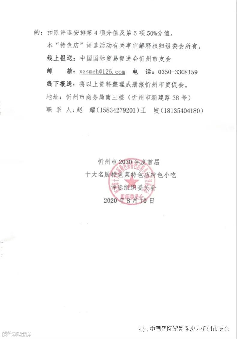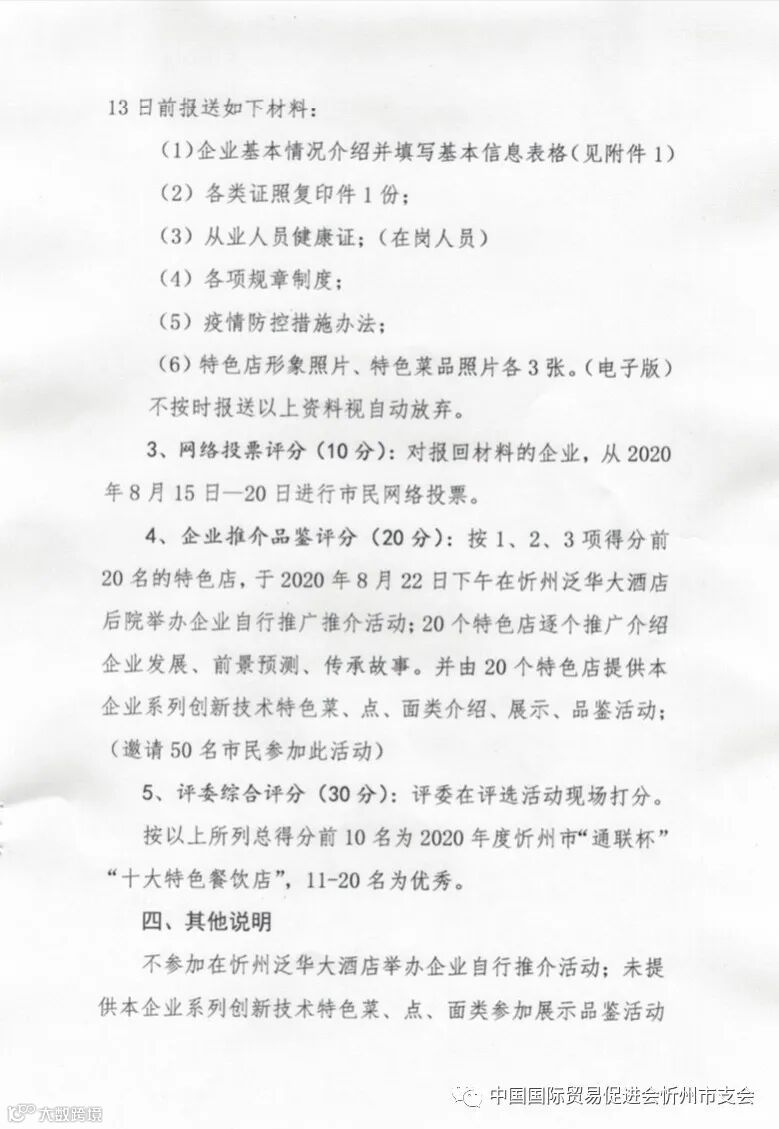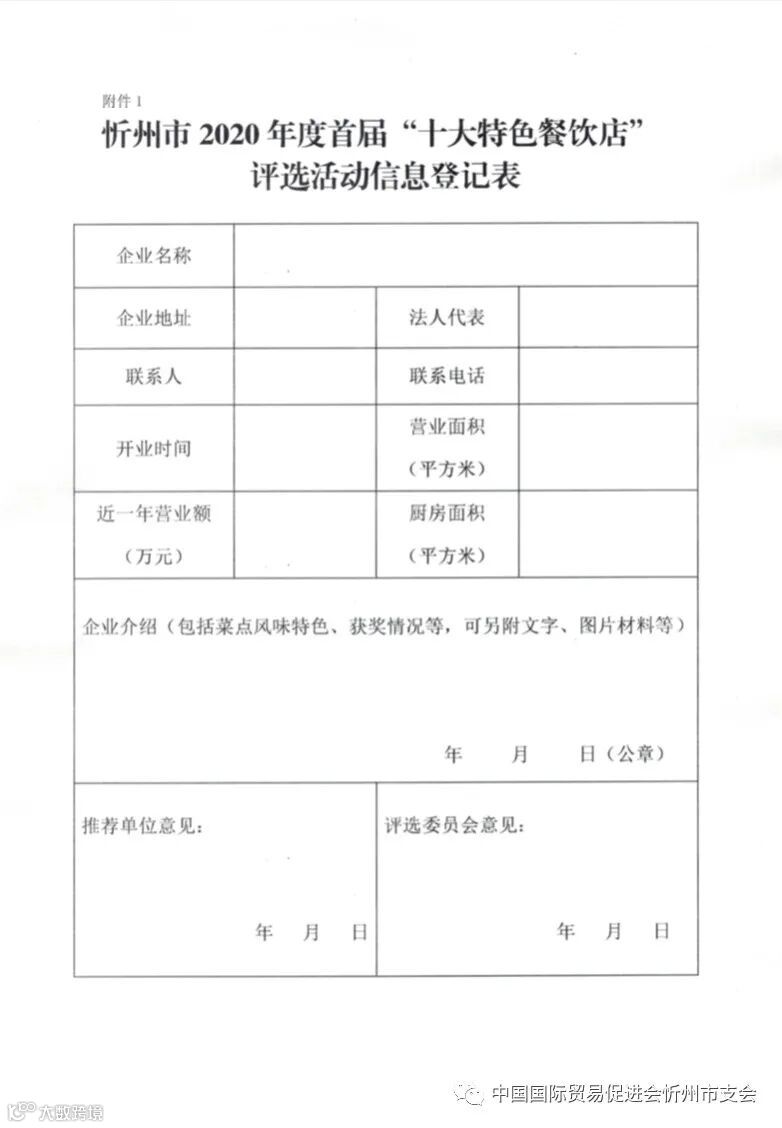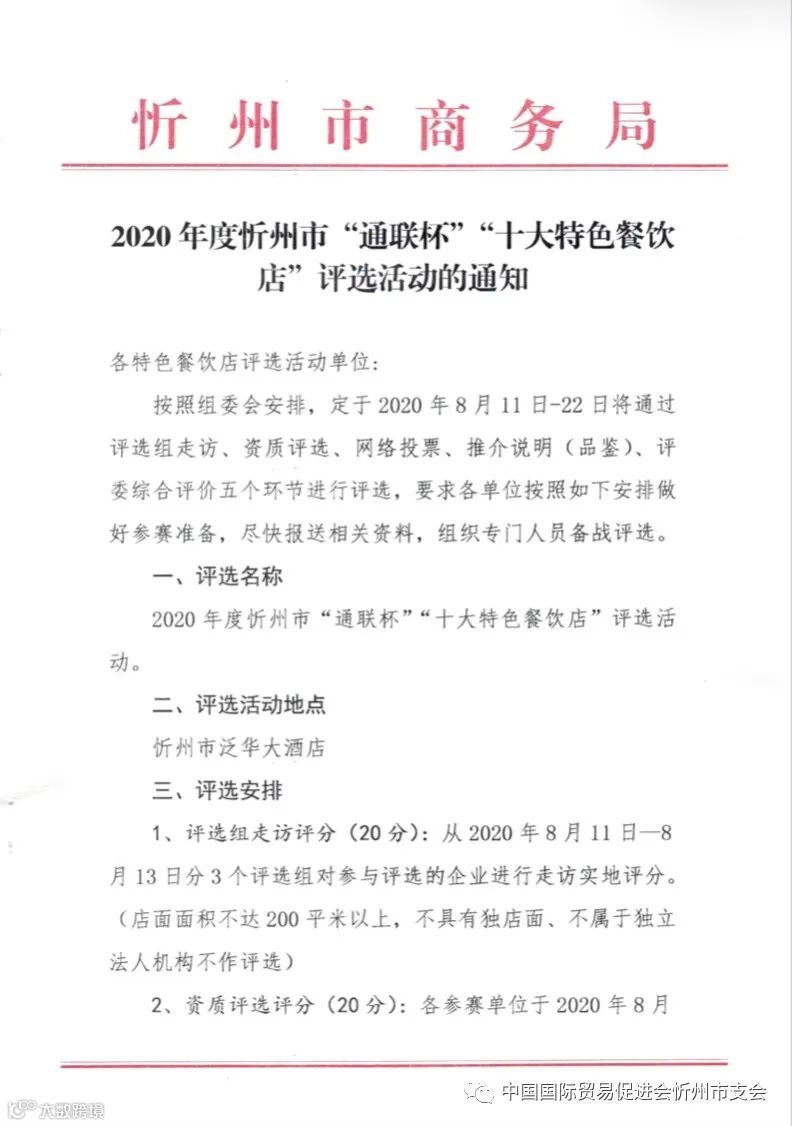 2020年度忻州市“通联杯”“十大特色餐饮店”评选活动的通知