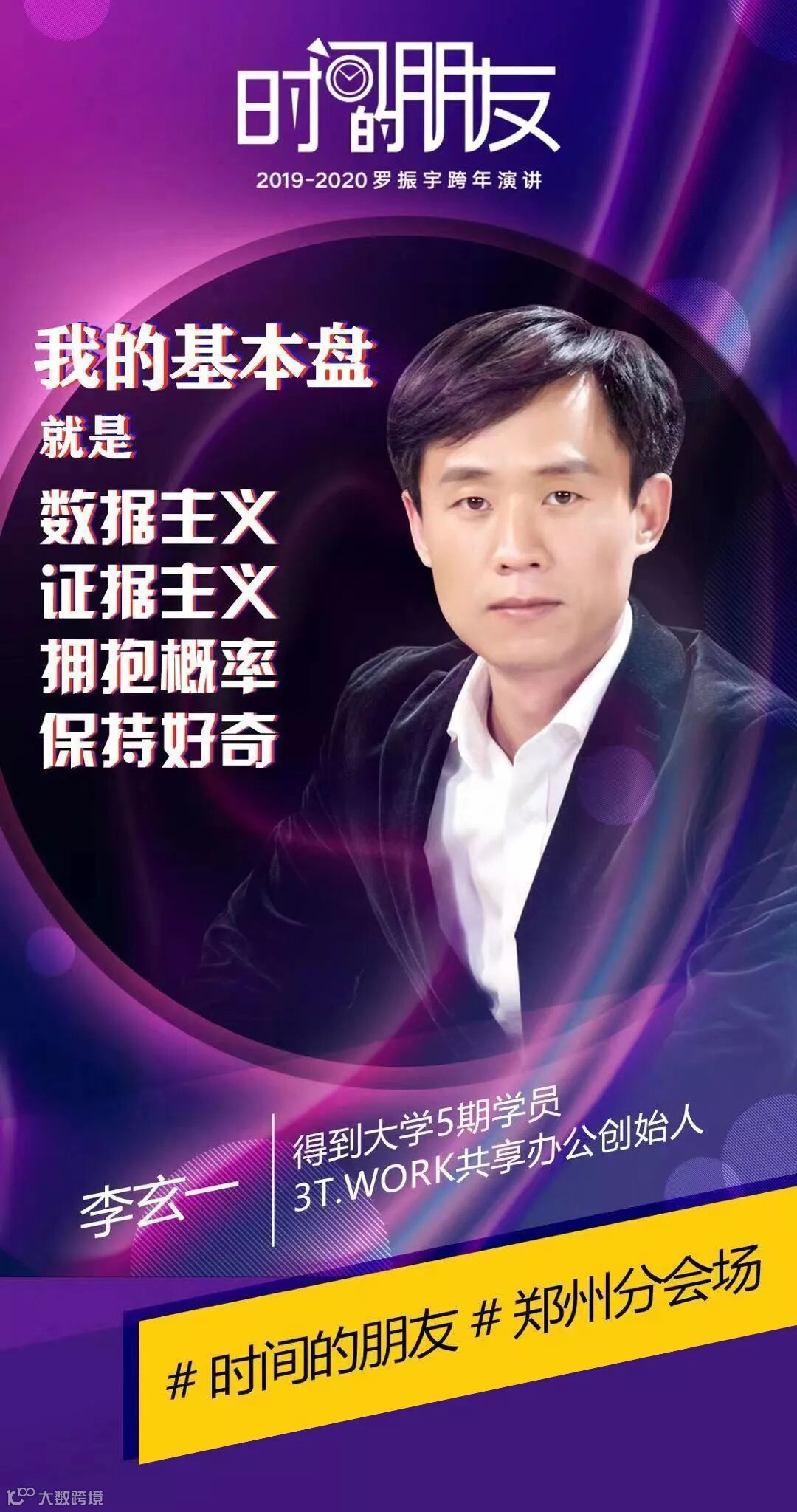 本次跨年还特意邀请了20余位得到大学5期郑州班的同学们,其中,3T.WORK共享办公创始人李玄一,将前往腾发车行郑州分会场,进行主题为“创业世界观”的演讲。