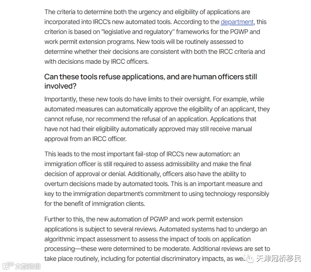 最近,加拿大移民局宣布:为了更高效地处理PGWP及工签续签申请,移民局使用AI工具来承担大部分文书和重复性劳动工作。