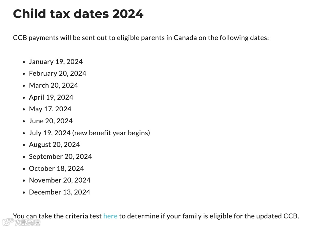 加拿大儿童福利金(CCB)是加拿大政府向公民提供的多项福利之一。该计划的目标是为符合条件的加拿大家庭提供经济支持,使他们能够负担养育18岁以下子女的额外费用。在加拿大税务局(CRA)的指导下,儿童福利金(CCB)保证家庭每月获得免税付款,以帮助子女的抚养和一般生活费用。CCB 付款通常由加拿大税务局(CRA)于每月20日发送。