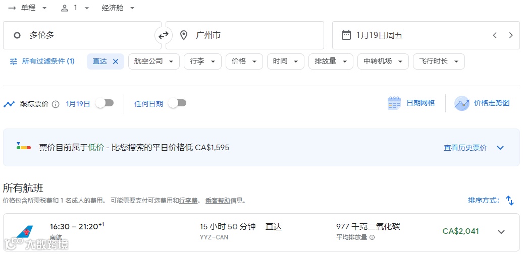 增航后,该航线票价也有所降低,在1月中旬,该航班的价格从$2000+,降至$1450左右。
