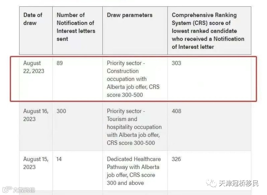 8月22日,加拿大阿尔伯塔省省提名AAIP 进行了新一轮的邀请,针对优先行业【建筑职业岗位阿省工作Offer】进行了抽选: