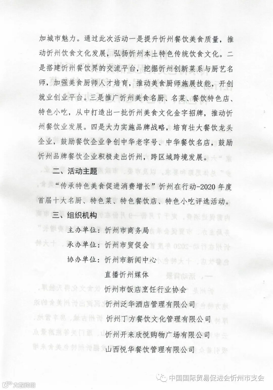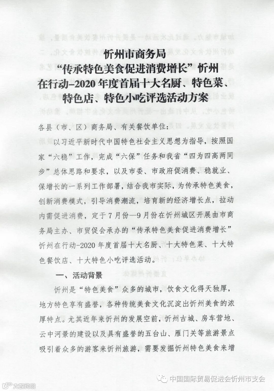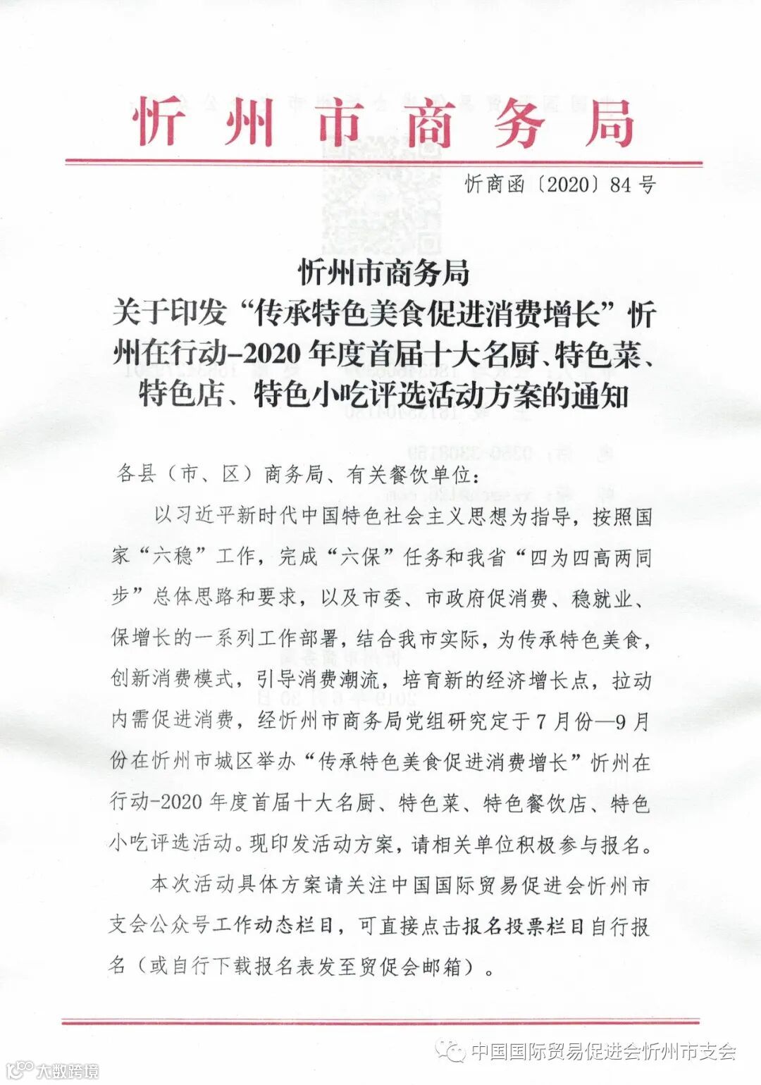 忻州在行动-2020年度首届十大名厨、特色菜、特色餐饮店、特色小吃评选活动总方案