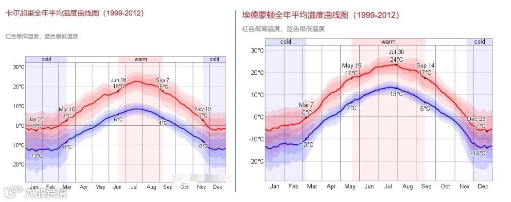 但冬天的卡尔加里会比埃德蒙顿舒服,因为从地理位置看,卡尔加里有暖流,冬季会有回暖的时候,而埃德蒙顿的冬季大部分时候都是大雪笼罩。