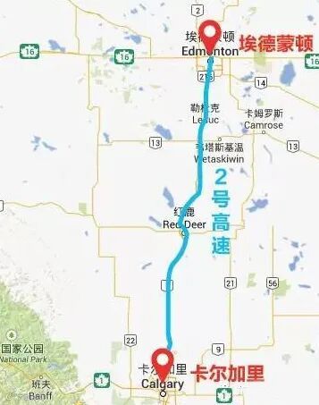 卡尔加里与埃德蒙顿的经度基本差不多,陆路由一条2号高速连接。纬度方面,卡尔加里北纬51度,埃德蒙顿北纬53度30分。埃德蒙顿海拔723米,卡尔加里海拔1050米。