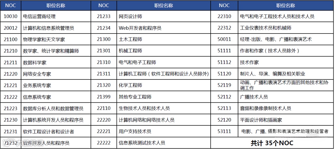 申请条件和常规BCPNP基本相同,区别是邀请符合科技人才的职业清单。(如下)