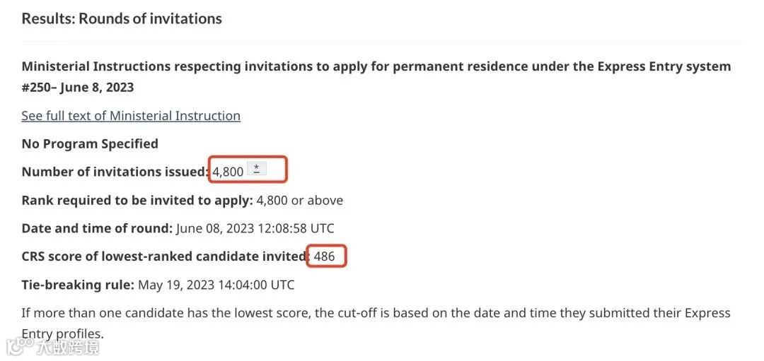 6月8日,EE快速通道全类别邀请,邀请了4800人,邀请分数CRS486分。