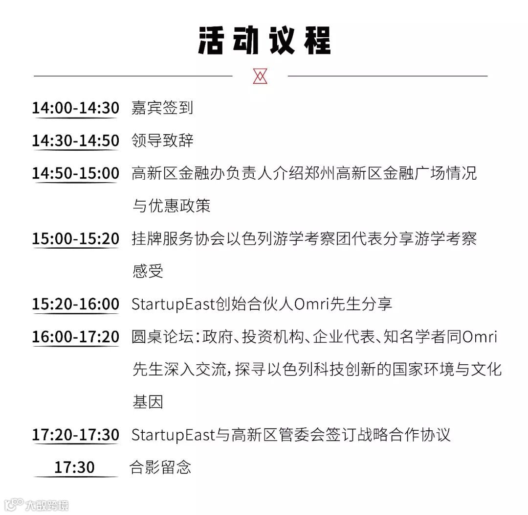 2018年9月2日到10日3T.WORK共享办公创始人李玄一跟随挂牌服务协会进行了为期9天7晚的以色列科技创新游学之旅,收获满满。为响应2018双创周号召,在省发改委高新技术处指导下,紧扣国家"高水平双创,高质量发展"的活动周主题,现特邀请以色列朋友——StartupEast负责人Omri先生到河南座谈交流,就中以创新平台搭建、海外人才团队引进和双创活动对接等方面建立共赢、长效、可持续的合作机制,切实加强中以双方在多领域的深入合作。
