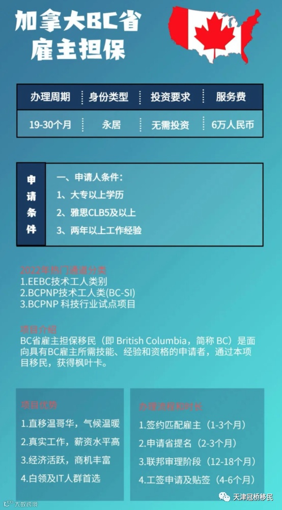 BC省雇主担保移民(即 British Columbia,简称 BC)是面向具有BC雇主所需技能、经验和资格的申请者,通过本项目移民,获得枫叶卡。