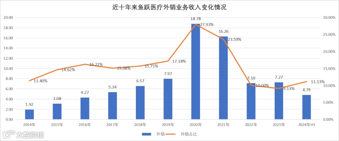 可是,自2020年之后,鱼跃医疗的海外营收数额和占比持续降低,2023年,海外营收占比更是低至了个位数,成了十年来的最低水平。即便是今年上半年实现外销收入4.79亿元,同比增长 30.19%,占比也不过提升至11%,仍处于历史低位。