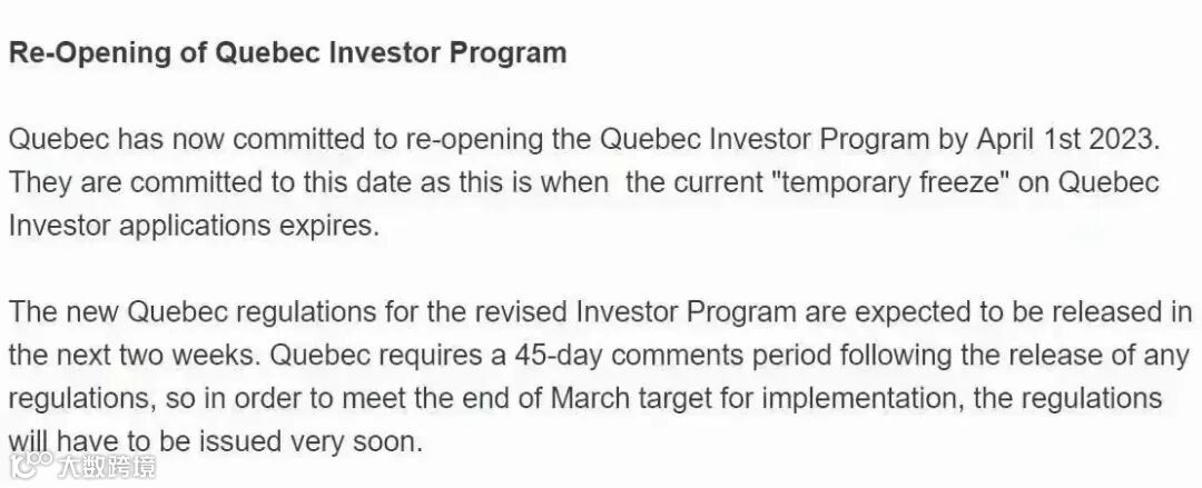 加拿大魁北克省(下简称“魁省”)移民局宣布:魁省投资移民项目将于2023年4月1日前重启!