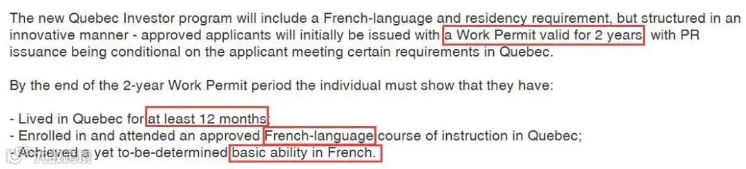 如果需持工签入境魁省学法语,投资额、家庭净资产、管理经验等要求大概率不变,魁省投资移民项目仍保留其显著的优势。