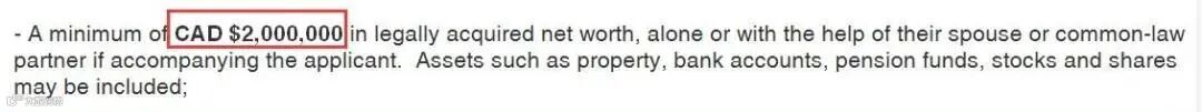 包括:房产、投资、存款、公司净值、养老基金、股票、配偶资产、赠与资产、继承资产等等,所有这些加起来,要达到200万加币。