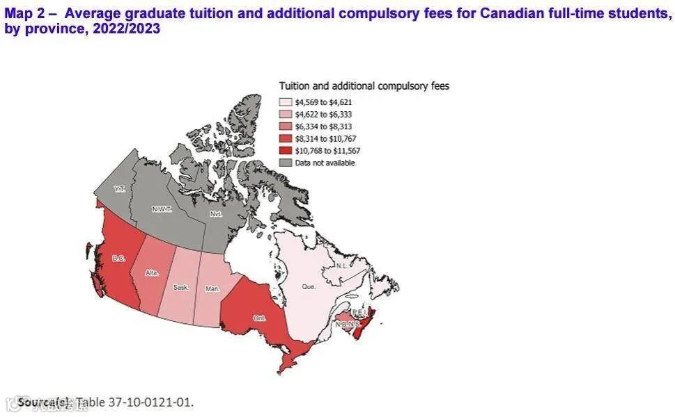 研究生留学生和本科留学生的学费在安省是最高的,分别为$27,149和$45,242加元。