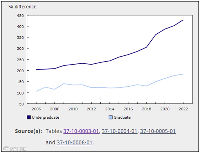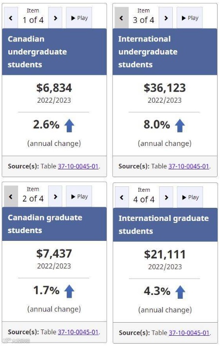 ◆ 本科留学生平均支付$36,123加元学费,比上一学年增长约8.0%。