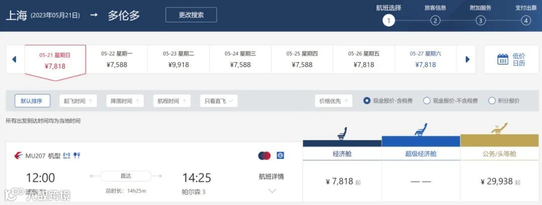 东方航空3月27日起恢复上海浦东直飞多伦多航班至每周七班,每天都飞,3月份价格还是一万左右。到了四月份五月份降至7000多。