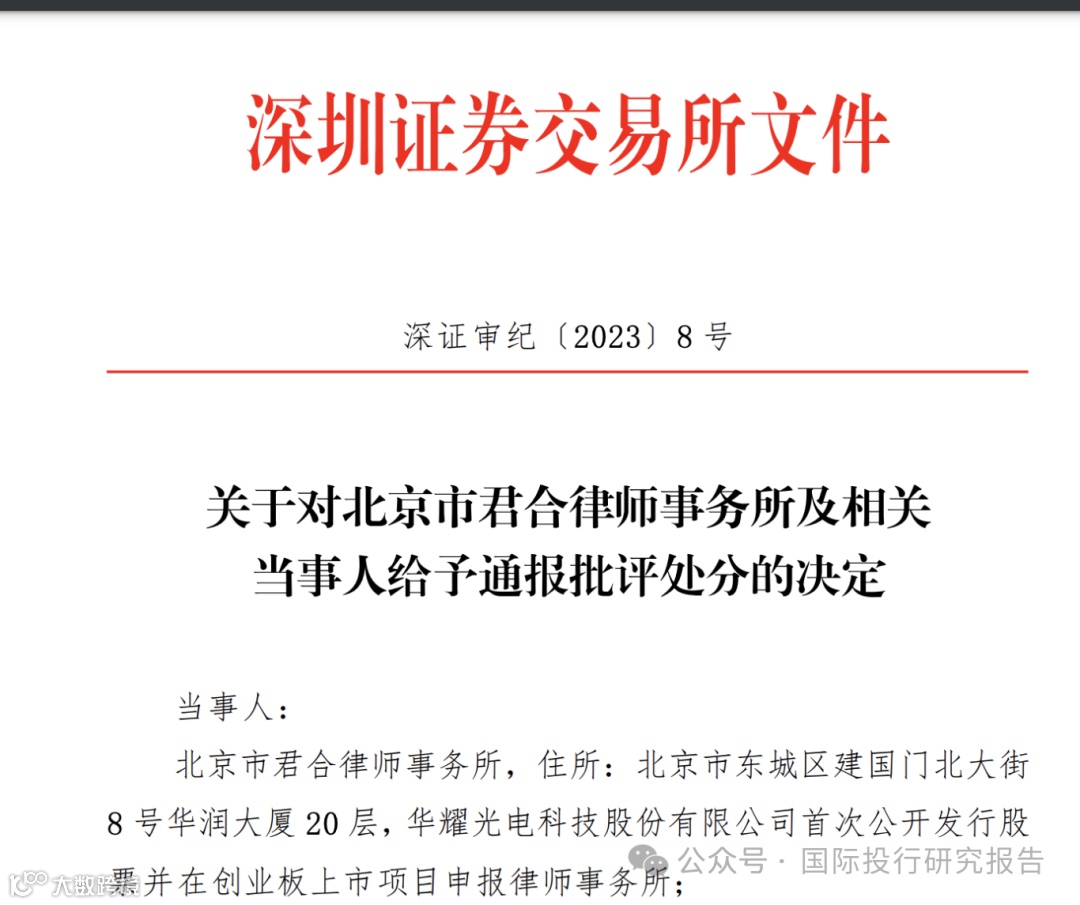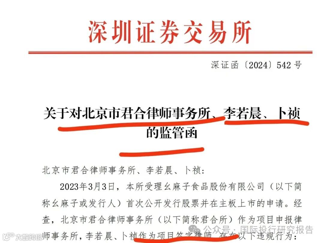 IPO律师签字拿钱不负责:深交所点名君合所IPO 金牌律师李若晨,君合所1 年内3次被深交所监管批评