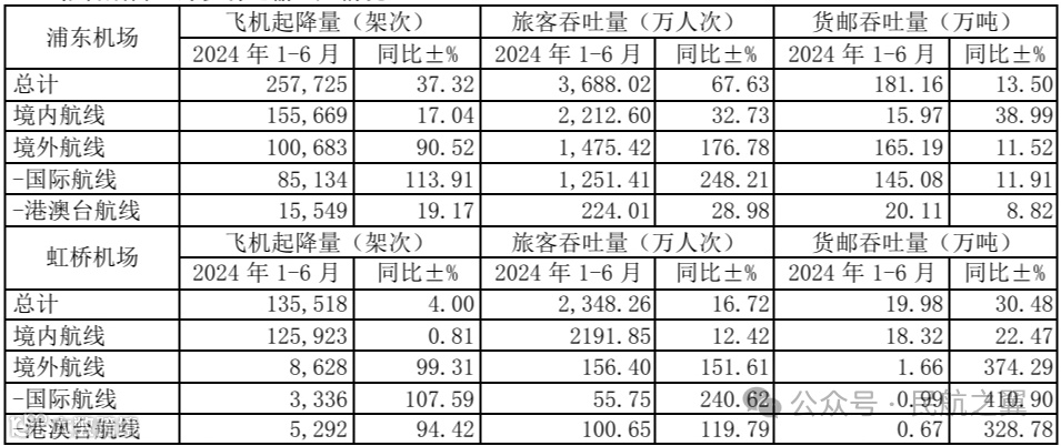 也就是说,2024年上半年,上海两大机场的数据和2019年数据基本相当。