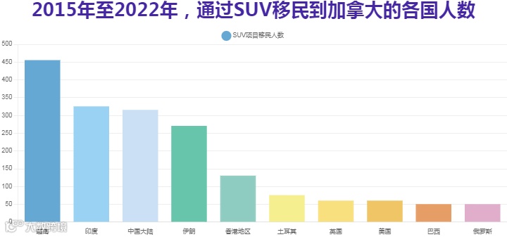 提交SUV的申请人大部分选择去往安省(654人)和BC省(504人),人数比第三的曼省多出6到8倍。