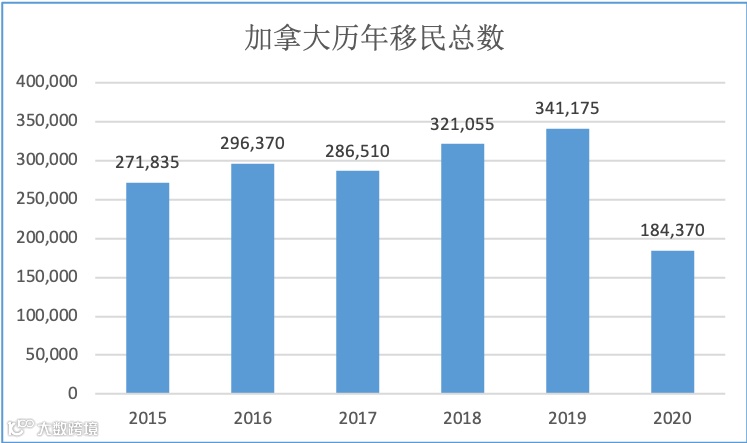 2016年至今,加拿大每年都会批准30万左右的移民,尤其在2018年发布未来三年的百万移民计划,18、19移民数字连创新高。但2020年受疫情影响,移民审批速度和最终批准人数都有大幅下降。情况在2021年将有较大改观,未来三年每年40万的移民目标将创历史新高。