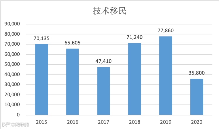 此数字为包含联邦技术移民FSW和魁省技术移民的总数,技术移民是加拿大移民体系中的旗舰项目,是所有项目中人数最多、速度最快的一个。