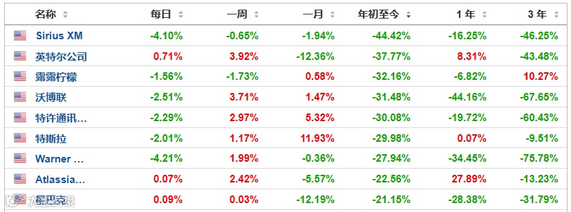 再看表现差的非科技公司,如露露柠檬今年跌了32.16%,华纳兄弟今年跌了27.94%,近三年跌了75.78%,星巴克近三年跌了31.79%。