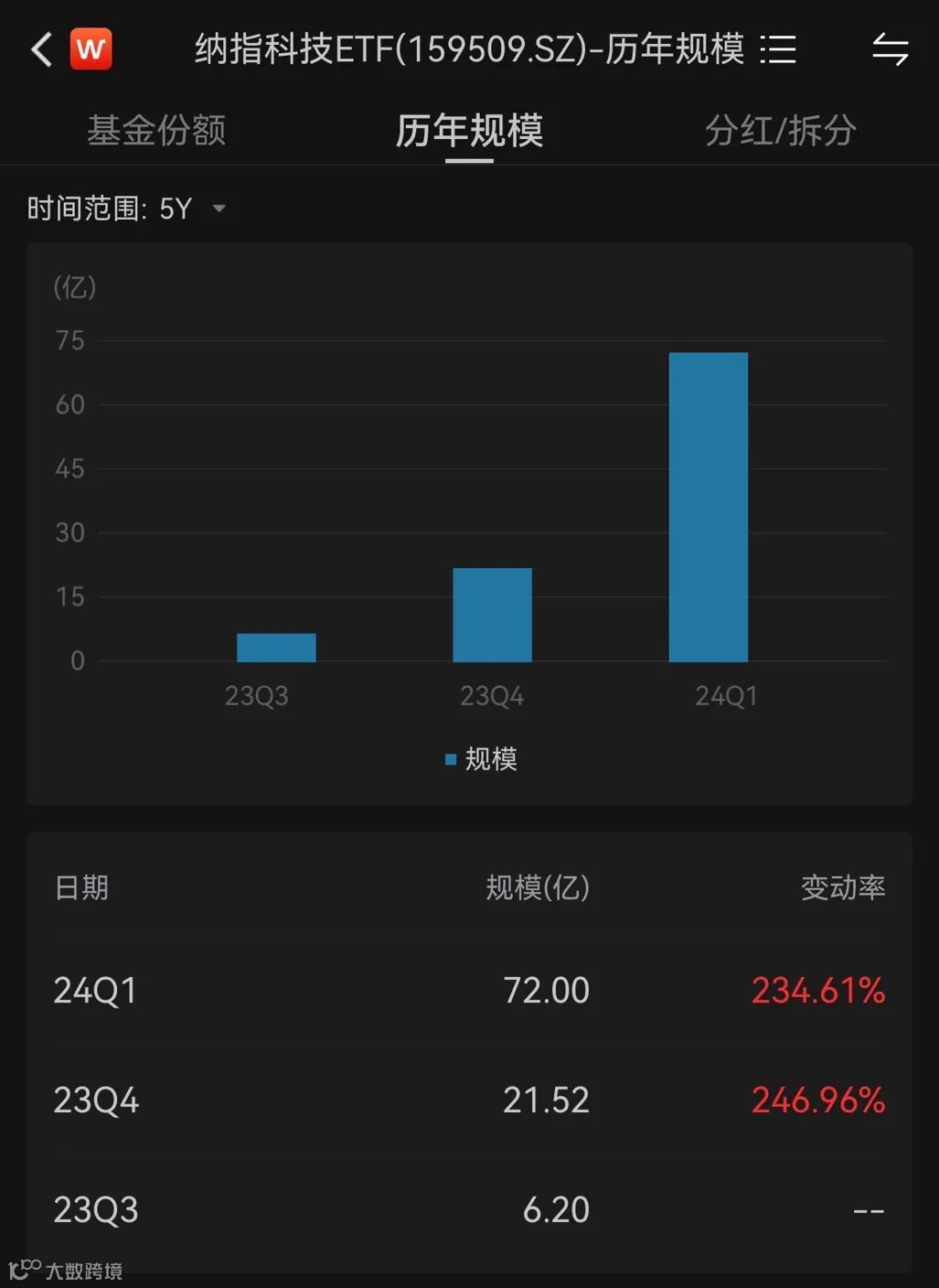 这样的产品也受到市场的认可,该基金规模从去年7月发行时的4.5亿规模,飙升到现在的75亿规模,规模增加1566%以上。