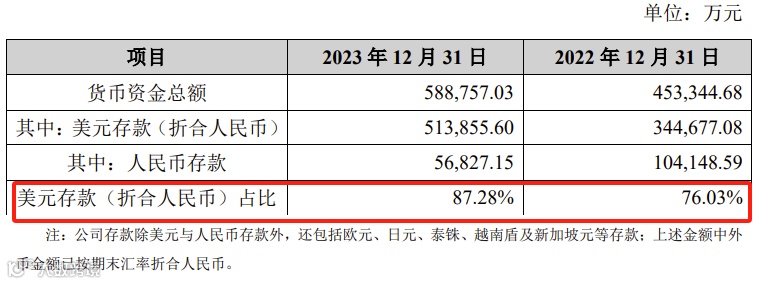 2023年公司实现境外收入58.2515亿元,占主营业务总收入86.0496亿元的67.70%,这使得公司能够拥有大量的美元,是公司展现惊人财技的基础。