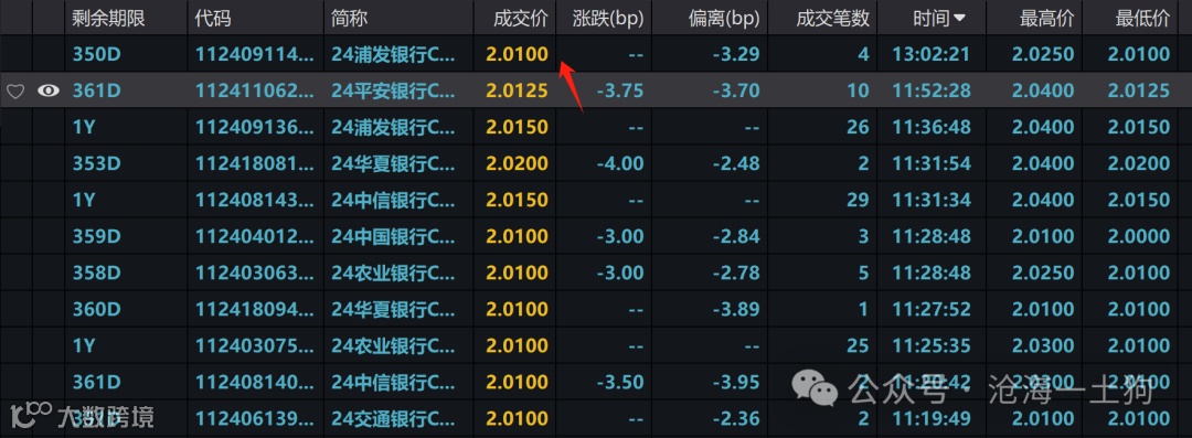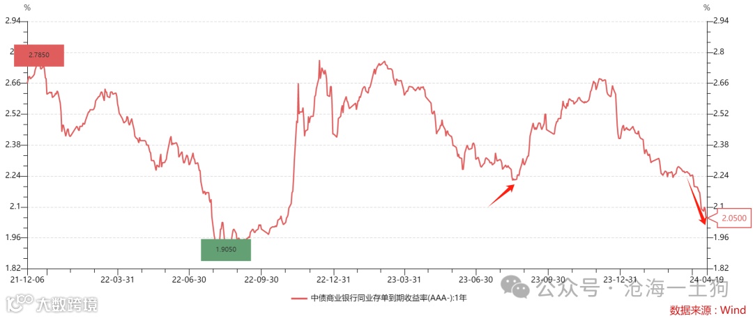 今天一年存单利率已经来到了2.01%附近,我们的下一个目标点位将调整为1.75%。