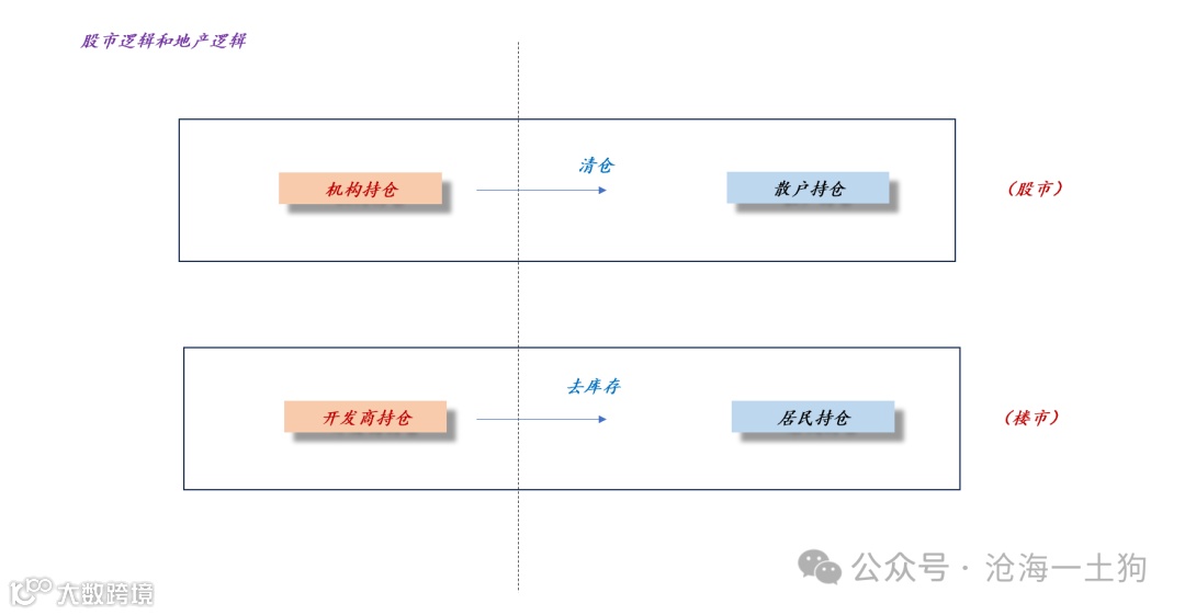 这需要我们借助股市方面的经验,如上图所示,我们可以把开发商持有的新房或者待建的新房和二手房一起视作存量住房,于是,开发商相当于持有大量股票的机构。