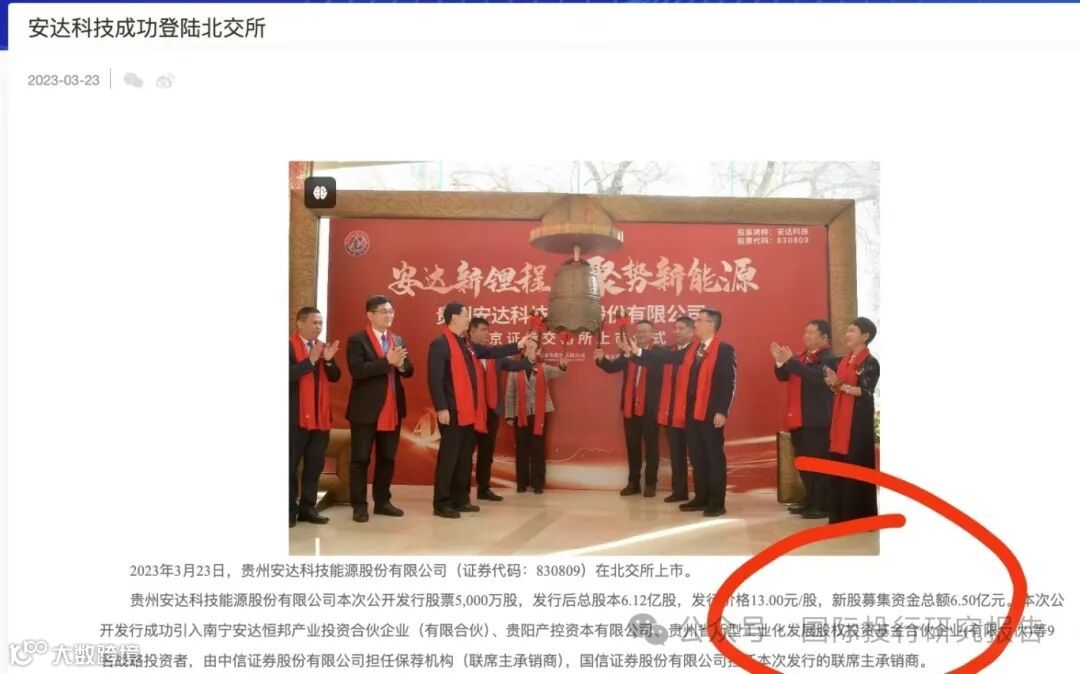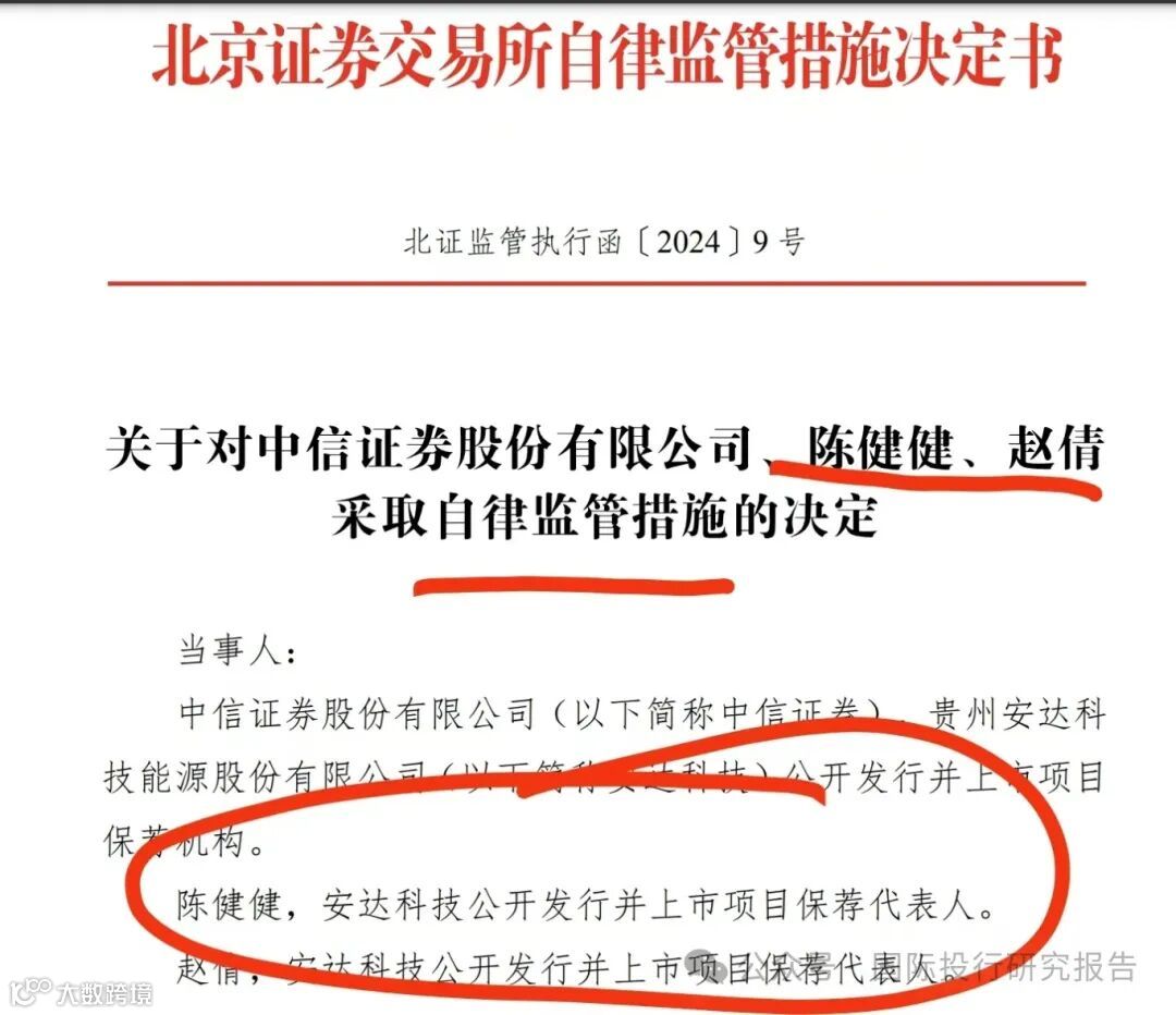 2 、处罚二位老师的原因是去年保荐上市的安达科技刚上市就严重亏损,2023 年 3 月,安达在北交所上市,募资了 6.5 亿,但 2023 年年报,安达就亏损了 6.3 亿。上市第一年就亏损,并且把融资的钱都亏掉了,在人类 IPO 历史上也很罕见。