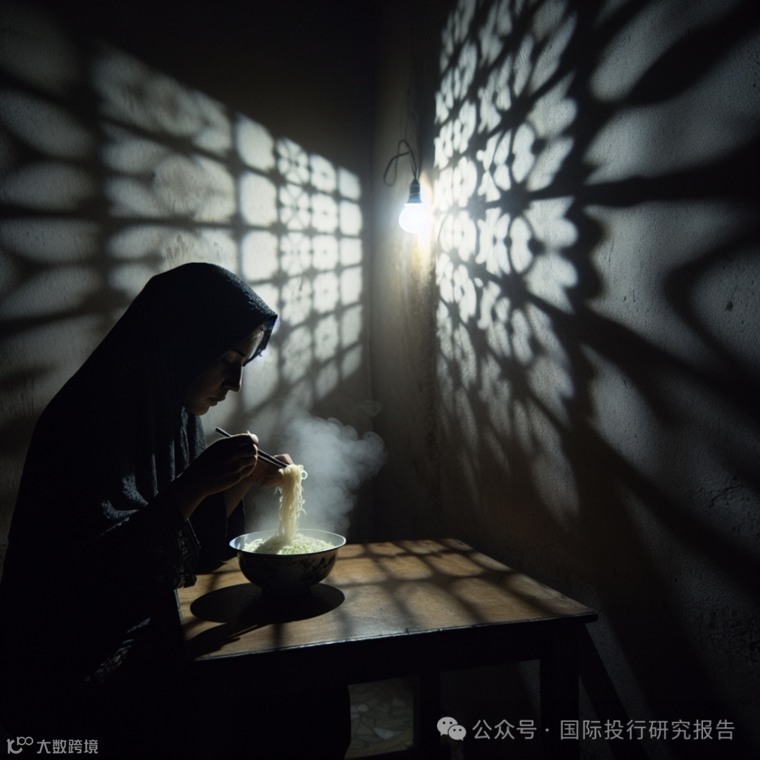 (AIGC图,吃香喝辣 vs 关灯吃面)