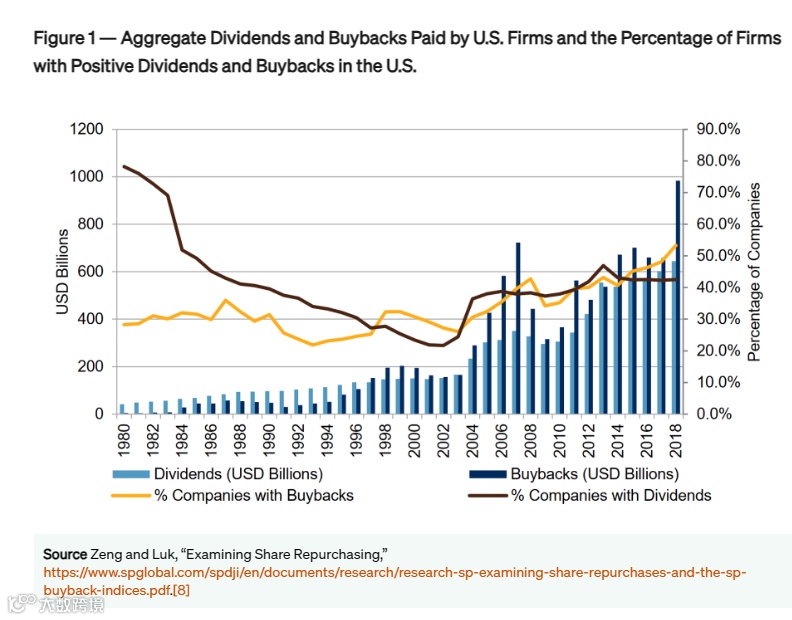 而值得注意的趋势是,股息越高,股息税造成的回报损失就越大,而为了解决相应问题,从上世纪80年代开始,部分公司以回购代替分配股息,以降低税负,目前美股头部公司已经几乎用回购作为主流的回报股东方式。