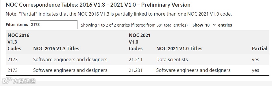 举个例子,软件工程师(Software Engineers and Designers),在2016.3版本中的NOC Coe为2173,而在新的版本中,2173被细分为了两个代码,分别是: