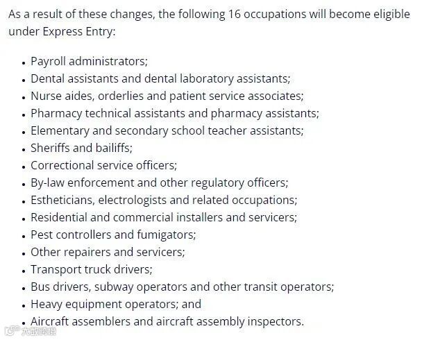 这三个职业虽然从EE“降级”,但仍有资格参与其他更广泛职业资格标准的计划,比如某些省份的省提名项目。